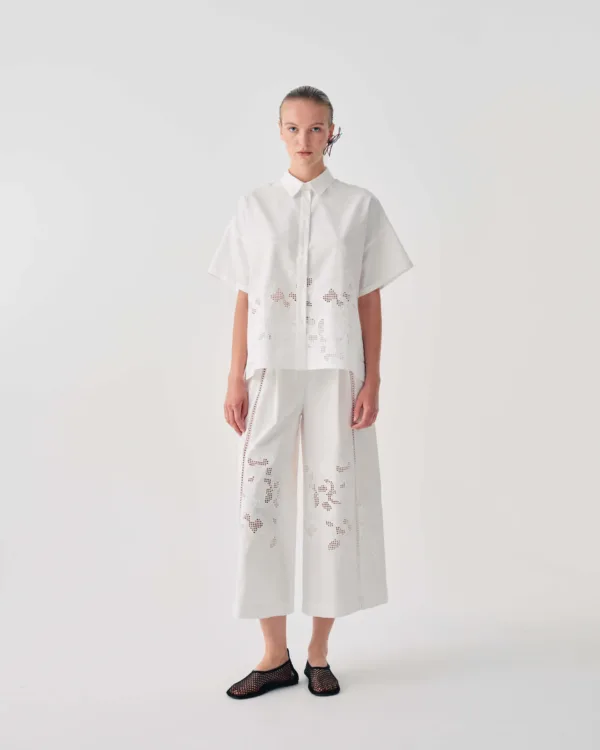 Cotton top in white with hand-made embroidered cut-out details. An artisanal touch that adds uniqueness and refinement, perfect for contemporary summer looks. Made in Italy.