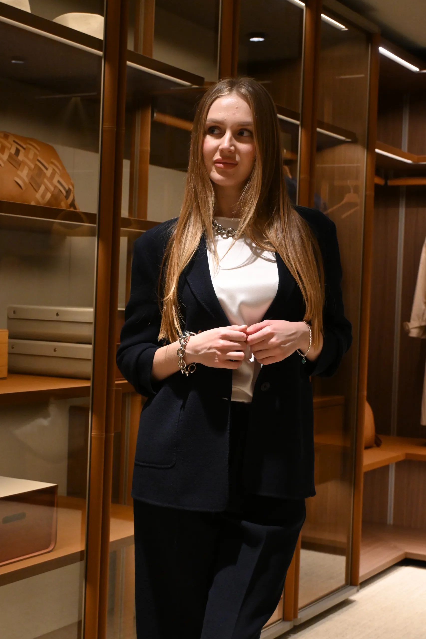 Satin top featuring a V-neckline and refined openwork floral embroidery along the lower section. The scalloped hem adds a romantic, feminine touch, while the relaxed silhouette ensures elegance and comfort. A versatile piece, perfect for both casual chic and more sophisticated looks.
