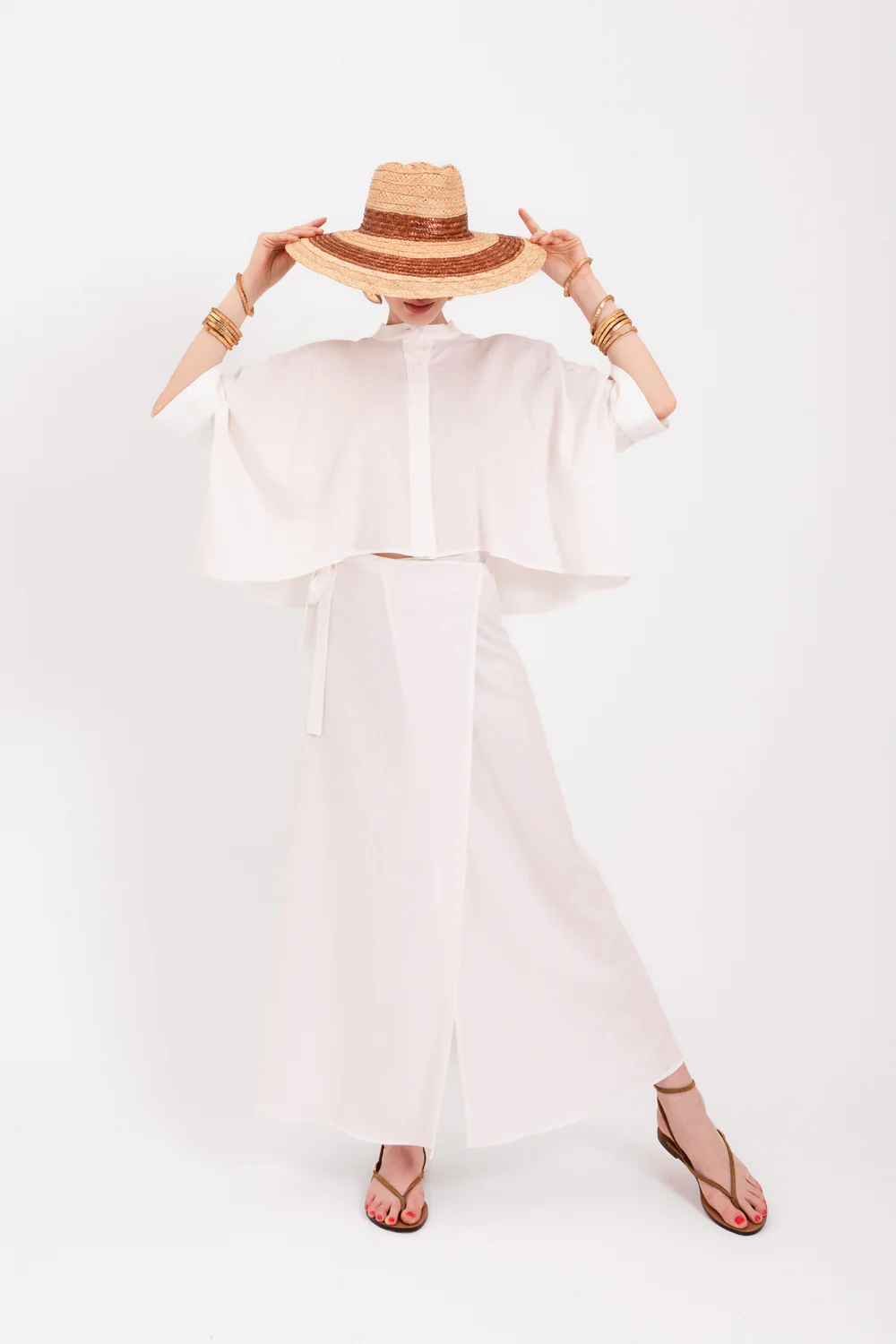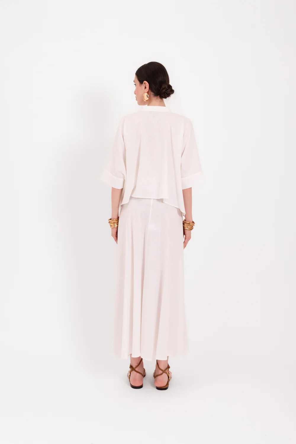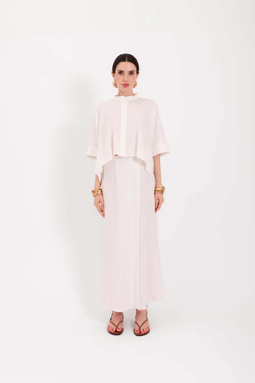 White Linen Blouse in white by LAVI closes with a buttons.