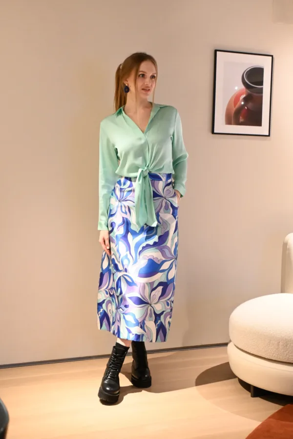 Lunatica Milano Aline Groove Blue Midi Skirt