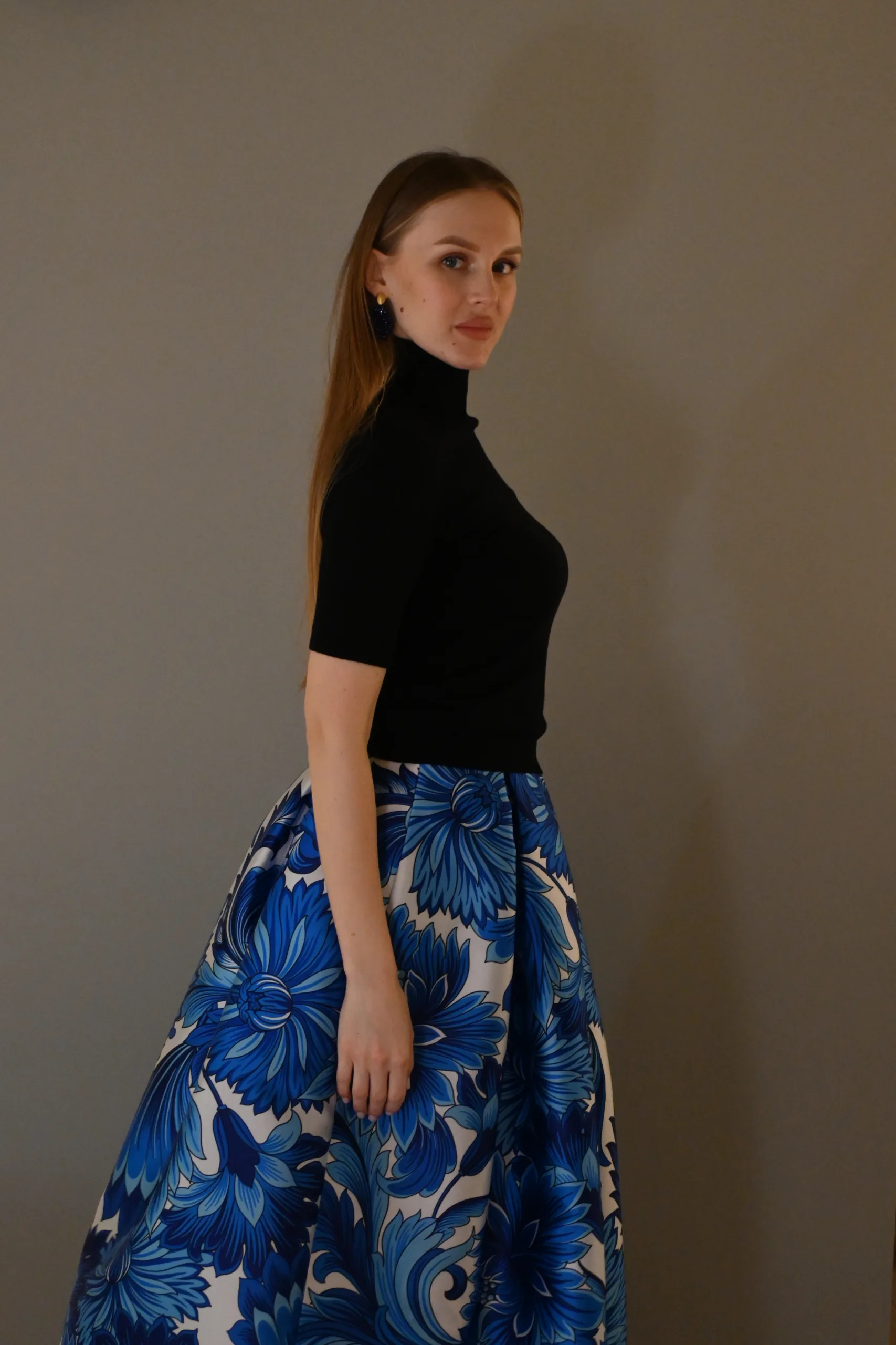 Luna Florence Blue Maxi Skirt skirt by Lunatica Milano closes with a side zip, two side pockets.