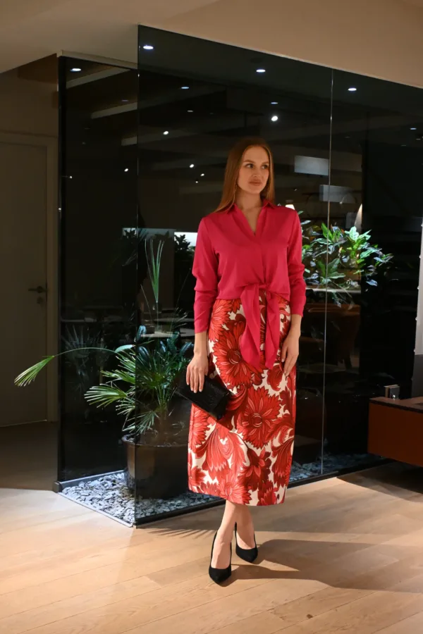 Luna Red Flowers skirt by Lunatica Milano closes with a side zip, A-line and two side pockets.