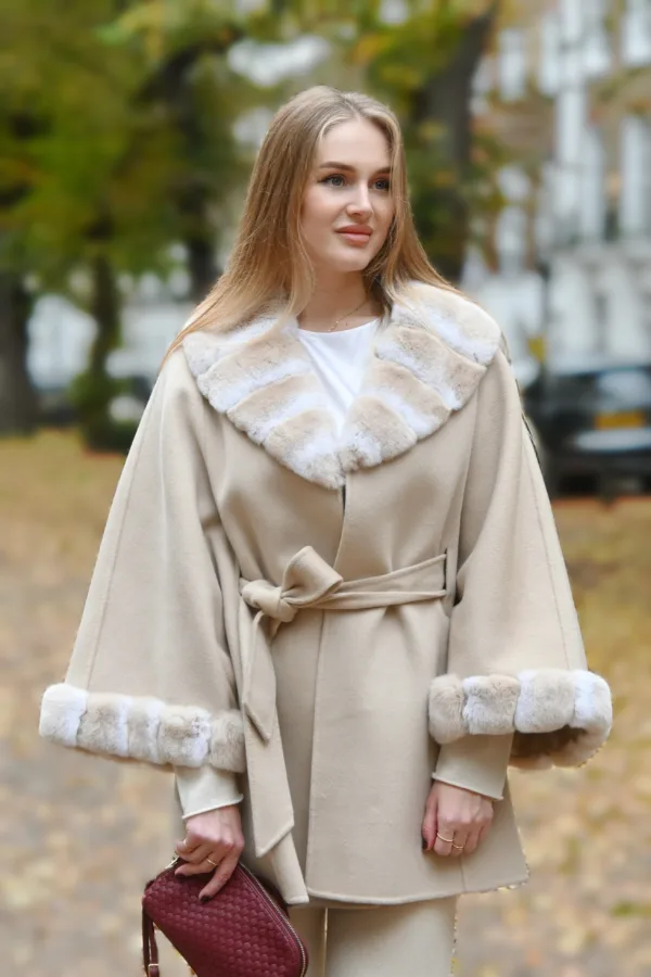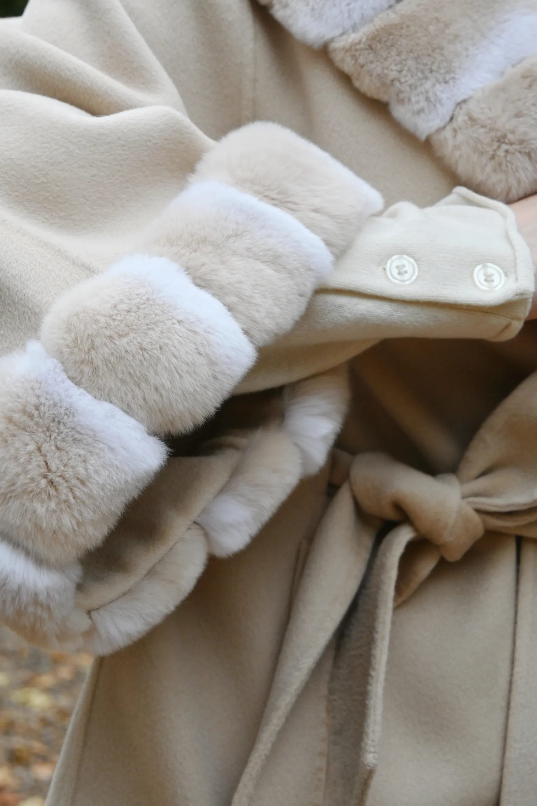 Stay stylish and cozy in Max&Moi Paris Shape beige coat. Made from a fine wool and cashmere blend, real fur.